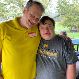 Donuts & Dudes & Dogs was a huge hit with over 12 dads and their sons enjoying cider and donuts, outdoor games, playing with therapy dogs, and hearing an encouraging message from Kevin Troupe, a dad of 2 boys with special needs. This event is designed to give dads and their sons a fun and restful time to connect with each other and connect with others who are experiencing similar life challenges. We love providing enrichment opportunities for families impacted by developmental and intellectual disabilities to give them a place where they can be themselves.